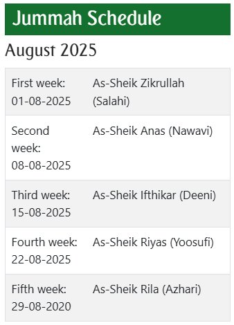Third week: 15-08-2025 | As-Sheik Ifthikar (Deeni) |